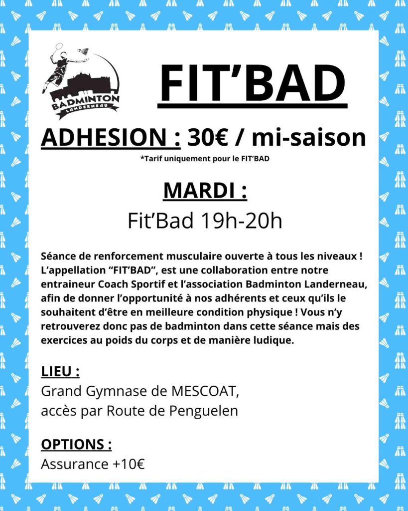 Fit’BadSéance de renforcement musculaire (mardi 19h)30€
